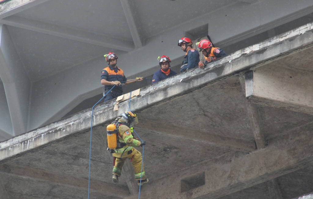 “4 funcionarios nuestros subieron a la azotea del edificio y con un sistema de cuerdas trasladaron a las personas desde la Torre A hasta la Torre B para su respectiva evacuación”, detalló Canal como parte de las operaciones de rescate y simulacro contempladas en esta actividad.