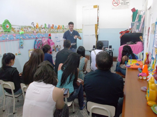 Alexis Castaño y José Luis Cárdenas, facilitadores de las charlas, a través de dos videos mostraron algunas recomendaciones básica sobre el lavado de las manos y el buen uso del agua y jabón; actividad que fue reforzada con la entrega de un díptico informativo para la prevención de enfermedades de piel, ojos, parasitosis intestinal, neumonía y otras. FIN/Yoly Franco. Fotos: Luis Cárdenas.