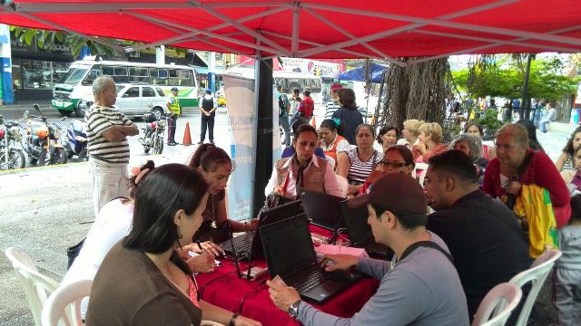 Trabajadoras de Fundesta participan en registro de la Unión Nacional de Mujeres, que se viene efectuando en la plaza Bolívar de San Cristóbal, iniciado el pasado sábado 2 de mayo en 335 municipios del país, como una propuesta del tercer Congreso Venezolano de Mujeres realizado entre el 6 y el 8 de marzo de este año.