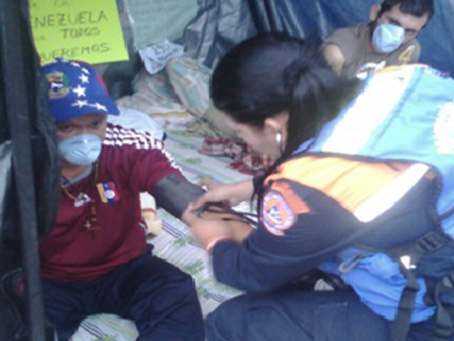 Protección Civil Táchira viene realizando la valoración médica respectiva a todas las personas que se encuentran realizando la huelga de hambre en los diferentes puntos de la ciudad de San Cristóbal y así garantizar la salud de los mismos.