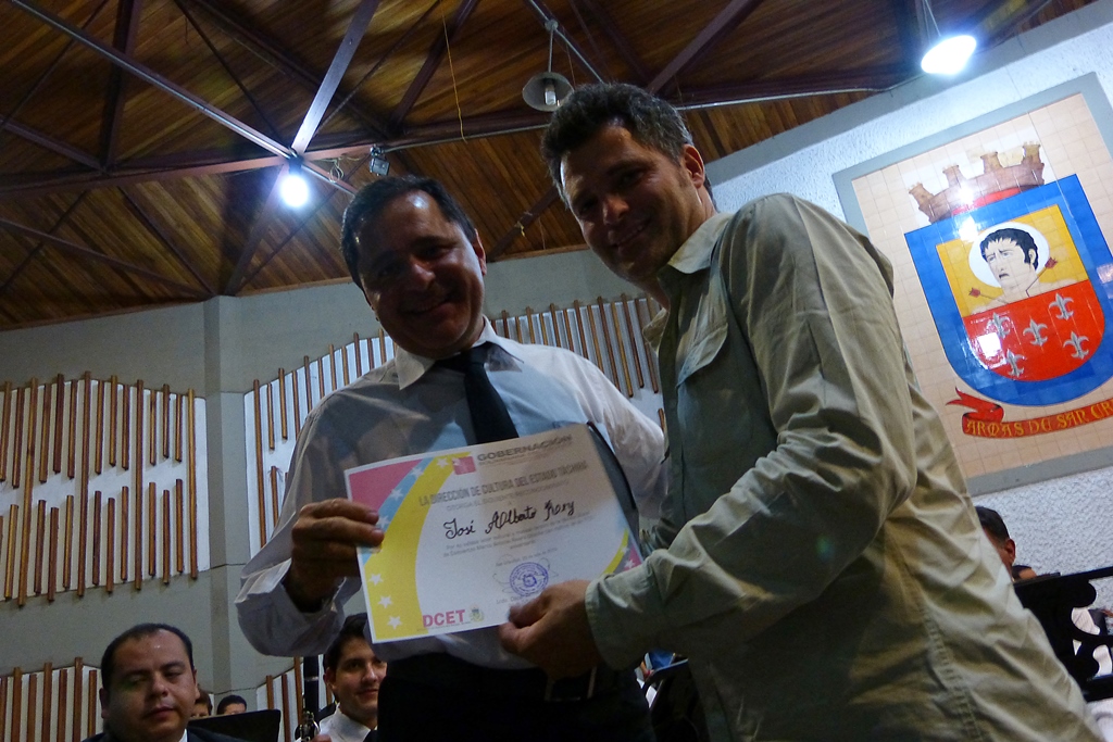 Oscar Duque director de Cultura en compañía de Reinaldo Mánjarres director de la Banda Oficial de Conciertos “Marco Antonio Rivera Useche” y maestros como Francisco Aragón, elogiaron la extraordinaria interpretación que muestra en cada una de sus participaciones la banda, un valioso grupo de talentosos artistas a quienes desean continúen cosechando éxitos y dejando muy el alto el nombre del Táchira.