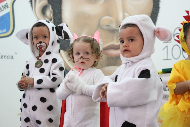 Los niños presentaron dos actos, el primero consistió en la dramatización de animalitos a partir de una canción infantil y el segundo grupo de niños hicieron un baile al mejor estilo de los años 60, en ambos hicieron muestra de su inocencia y espontaneidad.