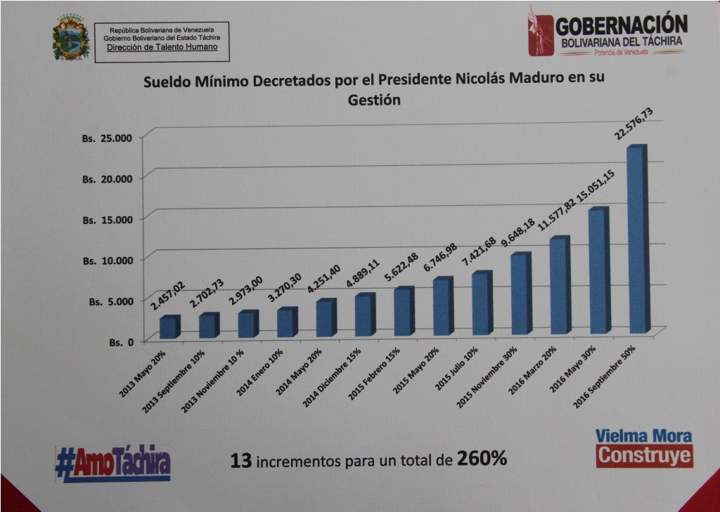 La gobernación bolivariana del Táchira apoya el aumento de salario decretado por el presidente constitucional Nicolás Maduro Moros, quien desde 2013 ha realizado 13 aumentos para todos los venezolanos.