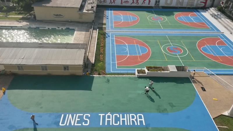 Las canchas deportivas de la UNES se encuentran en espacios abiertos, las mismas con mantenimiento permanente tendrán una durabilidad de primera mano de dos años en estos trabajos realizados, pudiendo extenderse por mucho más tiempo aplicando mantenimiento constante, en esta obra se contó también con el apoyo del Instituto de Vialidad Tachirense y Corpointa, siendo integrados a estas labores que permitirán mayor actividad física y deportiva en la UNES Táchira. FIN / Escrito por: José Manuel Chacón / Imágenes: Prensa IDT