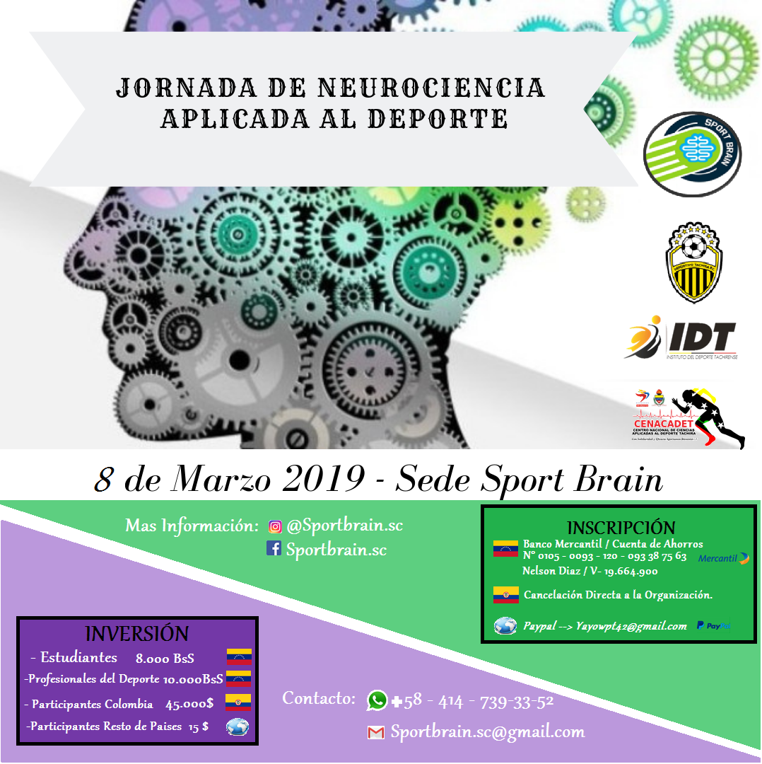 El Centro de Formación Integral Deportivo SportBrian está invitando para la Jornada de Neurociencia Aplicada al Deporte que se desarrollará los días 8 y 9 de marzo en las instalaciones del Centro Nacional de Medicina Deportiva Táchira, Cenacade, ubicado en el Velódromo de Pueblo Nuevo y en la sede del Centro de Formación Integral Deportivo Sport Brian, ubicado en la urbanización Propatria de La Concordia.