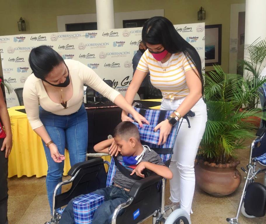 Con la entrega de sillas ortopédicas, bastones y andaderas a niños y niñas con discapacidad motora, la gobernación del Táchira en alianza con organismos internacionales continúa atendiendo a través de la ayuda humanitaria los hogares tachirenses en situación de vulnerabilidad.