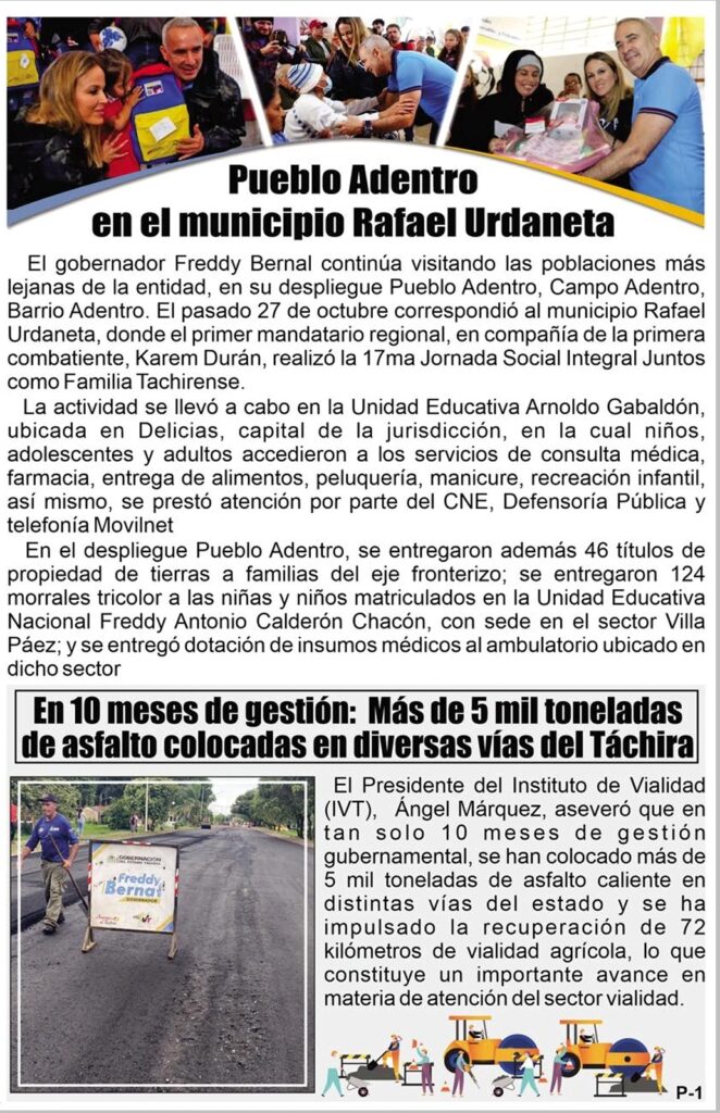 Comparte El INFORMATIVO TÁCHIRA – Edición No 12, boletín de la Gobernación del estado, compacto para dar cuenta de la gestión y los esfuerzos que en conjunto con el gobernador Freddy Bernal se vienen ejecutando por amor el Táchira.