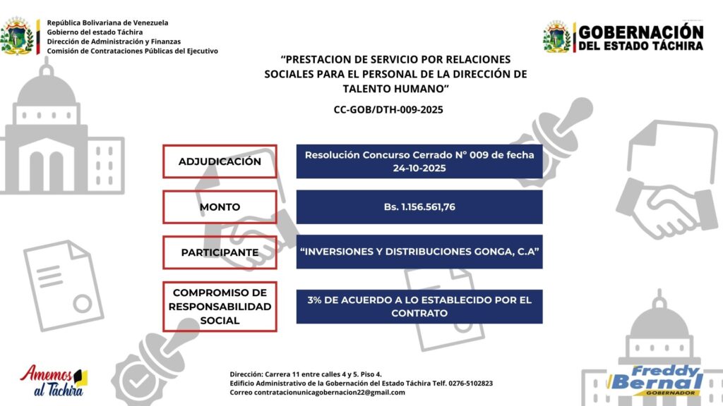 “PRESTACION DE SERVICIO POR RELACIONES SOCIALES PARA EL PERSONAL DE LA DIRECCIÓN DE TALENTO HUMANO” Posted on 28 de octubre de 20254 de diciembre de 2025 by LARISSA CHACON CC-GOB/DTH-009-2025