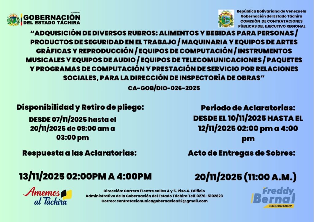 ADQUISICIÓN DE DIVERSOS RUBROS: ALIMENTOS Y BEBIDAS PARA PERSONAS / PRODUCTOS DE SEGURIDAD EN EL TRABAJO / MAQUINARIA Y EQUIPOS DE ARTES GRÁFICAS Y REPRODUCCIÓN / EQUIPOS DE COMPUTACIÓN / INSTRUMENTOS MUSICALES Y EQUIPOS DE AUDIO / EQUIPOS DE TELECOMUNICACIONES / PAQUETES Y PROGRAMAS DE COMPUTACIÓN Y PRESTACIÓN DE SERVICIO POR RELACIONES SOCIALES, PARA LA DIRECCIÓN DE INSPECTORÍA DE OBRAS