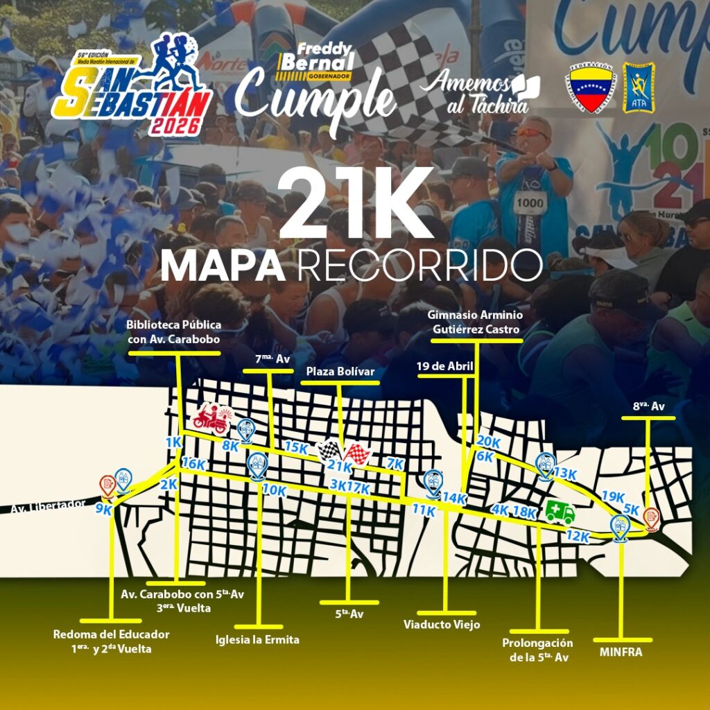 Más de mil atletas participarán en la edición 56 de la Media Maratón Internacional de San Sebastián que se llevará a cabo este sábado 31 de enero en la ciudad de San Cristóbal, con salida en la Plaza Bolívar y que destaca la presencia de corredores de Kenia, Ecuador y Colombia.Jiuvant Huérfano, Presidente del Comité Organizador de la Feria informó además que, la maratón tiene la caracterización internacional puesto que hay 90 representaciones extranjeras y, en cuanto a los nacionales, un número importante de 15 estados para las categorías 21 kilómetros y 10 kilómetros. Con respecto a la premiación, hay un atractivo de 3 mil euros para el atleta que rompa el récord que por más de 20 años de ha mantenido, el cual es 1 hora 04 minutos 08 segundos para la categoría masculina y 1 hora 09 minutos para la femenina.“Tenemos previsto premiar a unos 54 corredores, 12 de ellos en la categoría 21K y el resto para los 10k, además, habrá un despliegue policial y militar de aproximadamente 600 hombres solamente en pista, así como la hidratación correspondiente”.Además de eso –añadió Huérfano- estamos repartiendo lo equivalente a 17 mil 100 euros en premiación y si rompen el récord sería 22 mil 100 euros. Todo está montado (…) y el día domingo tendremos la actividad “Caminemos por la Feria” que tendrá agenda el domingo 1 de febrero a las 9 de la mañana. “Caminemos por la Feria” es una actividad recreativa, organizada por la primera dama del estado Karem de Bernal, a través de la Fundación Familia Tachirense, y que saldrá desde la Plaza Bolívar de San Cristóbal, dirigida a toda la familia y sus mascotas.Como plus a la premiación, habrá rifas el día de la entrega de medallas, a través el dorsal y cédula de identidad de cada corredor, destacando motocicletas y electrodomésticos./// Jeniffer Borrero. Prensa @gobernaciondeltachira