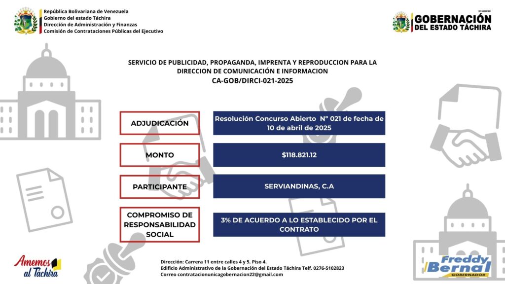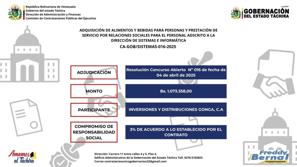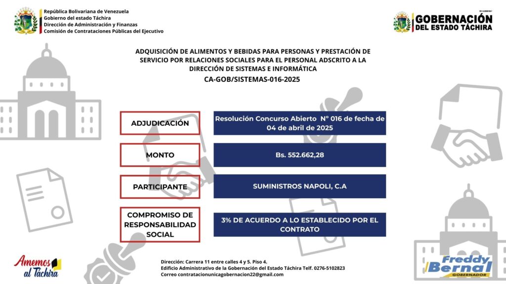 Adquisión de materiales eléctricos para ser utilizados en las diferentes áreas de la Corporación de Infraestructura, Mantenimiento de Obras y Servicios del estado Táchira.